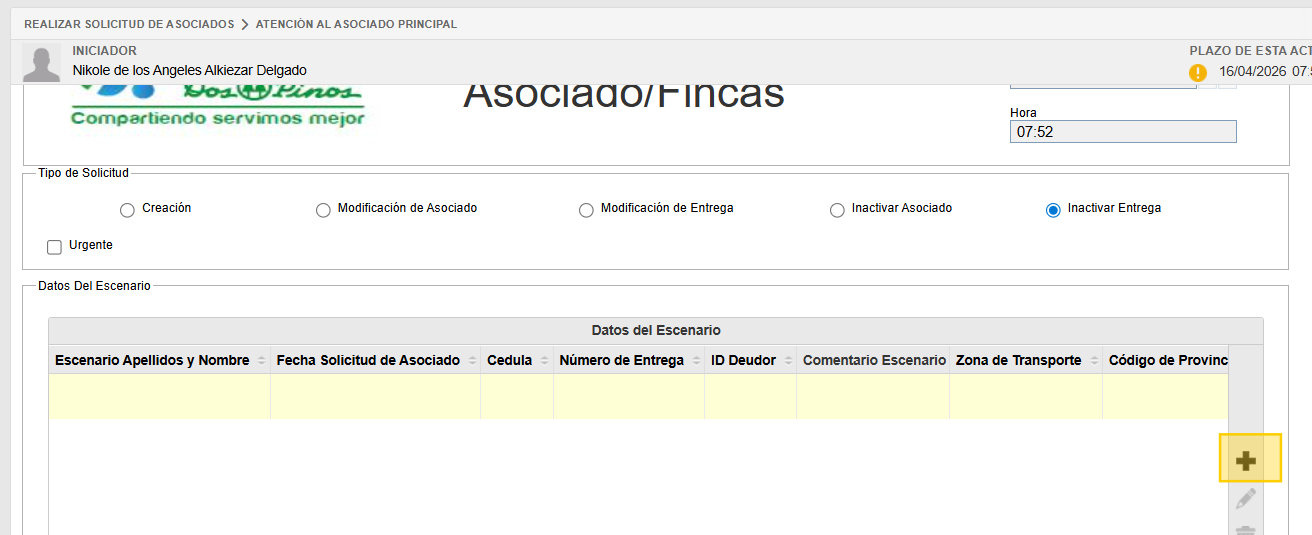 Una vez seleccionado se da clic en el + para agregar los datos de los asociados