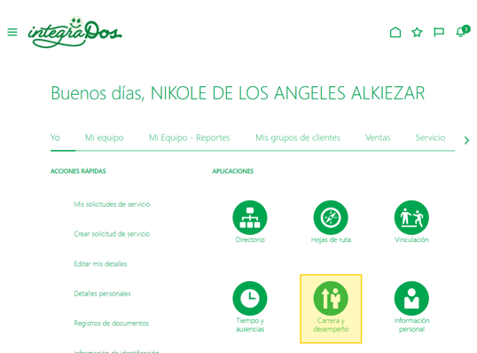 - Una vez dentro, seleccionar la opción: Carrera y desempeño