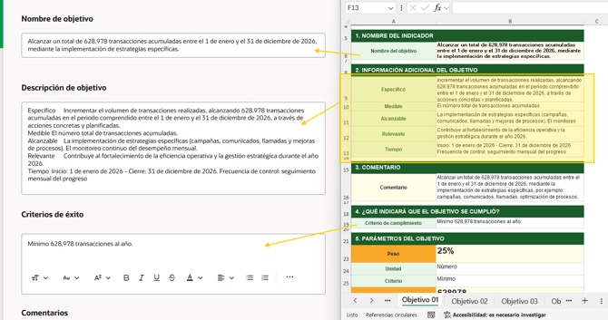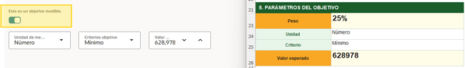 Se debe de activar el switch que pregunta si el objetivo es medible y colocar la información del excel