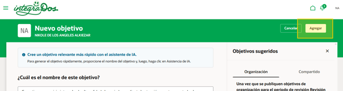 Una vez cargado el objetivo como las diversas tareas se da clic en Agregar o bien Actualizar en caso de que se este modificando.