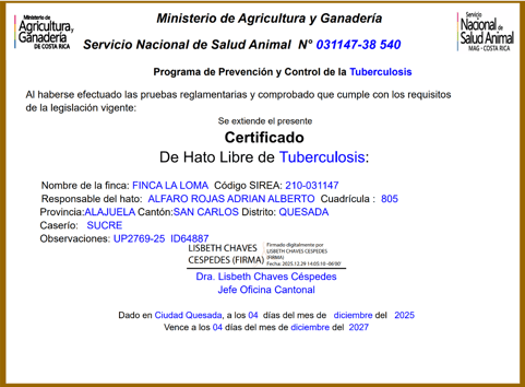 Hato libre contempla 2 partes TUB/BRU, este certificado se renueva cada 2 años, puede que se desfase ya que la brucelosis es cada 2 años y tuberculosis es a 1 año.