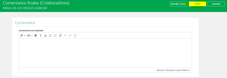 Una vez que se ha recibido la retroalimentación de la jefatura, es necesario completar el último paso para cerrar la evaluación de rendimiento. En este paso se debe responder o comentar sobre lo recibido por parte de la jefatura.
