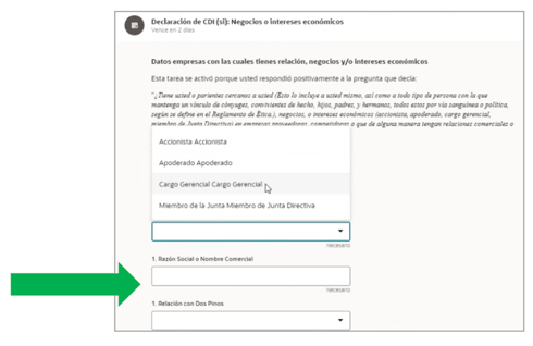 - Utilice los espacios del ítem 2 en caso de tener más de un potencial conflicto.