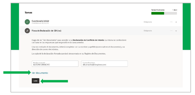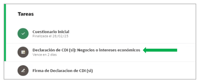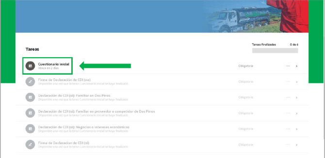 Una vez que seleccione la Declaración de Conflicto de Interés período en curso, dar clic en la tarea denominada: Cuestionario Inicial.