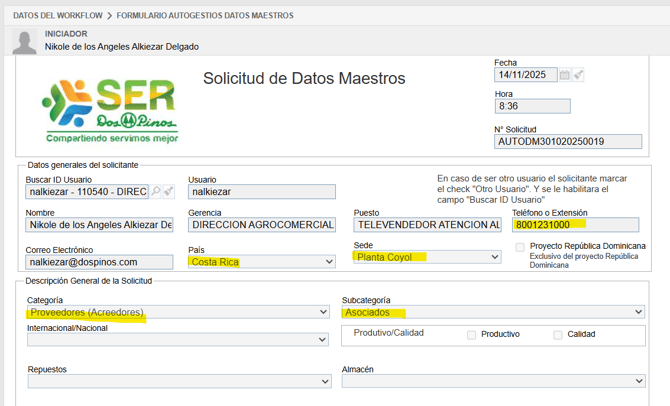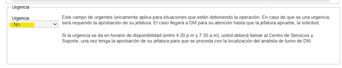 Continúan un poco más para abajo y aparece esta opción colocar NO ya que esto agiliza el proceso, en caso de colocar SI esto implica VB de jefaturas y en ocasiones atrasa más el proceso.