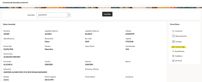 - Cuentas para el pago de programas especiales y excedentes: se identifican como "Datos pago asociado" y acá se depositan excedentes anuales, programa de calidad de leche, programa de ausencia de antibiótico y cualquier otro pago adicional definido por el consejo.