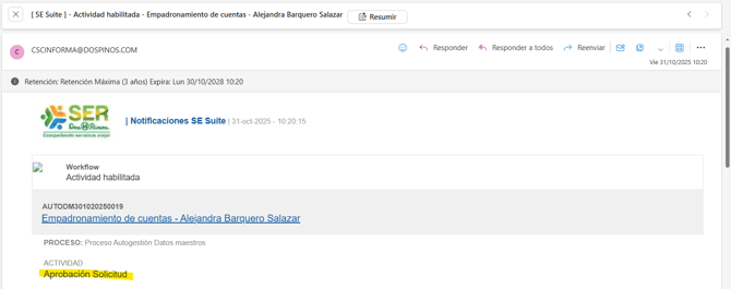 Se debe confirmar una vez recibida la notificación de cierre del caso al correo para garantizar que el cambio se hiciera correctamente, la confirmación de cierre se ve de la siguiente manera