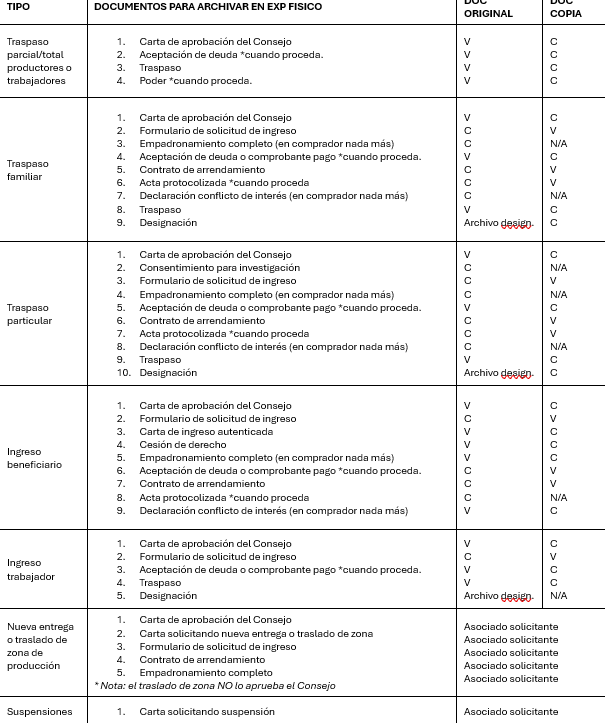 - Cada agente es responsable de acatar las instrucciones del archivo, el mismo debe velar por la obtención de la totalidad de requisitos originales según cada tipo de trámite, dichos documentos deben tenerse a más tardar 15 días posteriores a la fecha de presentación de dicho trámite ante el Consejo de Administración.