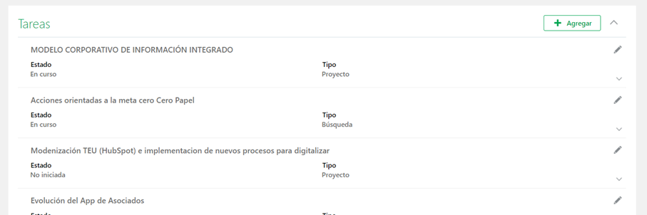 Al dar Aceptar, se activará la opción para incluir tareas.
