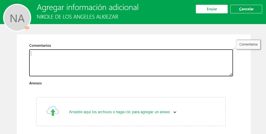 - Aparecerá una ventana para colocar algún comentario.