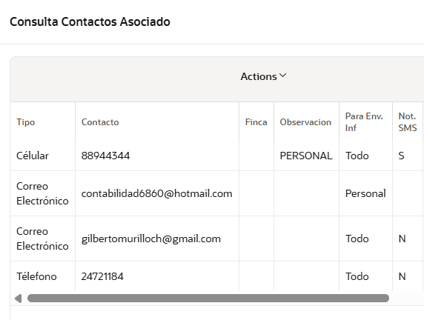 - El sistema NO permite duplicar correos, por lo que es importante revisar detalladamente, ya que si quiere poner un mismo correo por ejemplo para Recibo y para facturación, se debería poner como TODO, entendiendo la prioridad del sistema de tomar primero los asignados como F y R, luego los T (al este ser un común, este es el que debe colocarse)