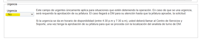 Continúan un poco más para abajo y aparece esta opción colocar NO ya que esto agiliza el proceso, en caso de colocar SI esto implica VB de jefaturas y en ocasiones atrasa más el proceso.