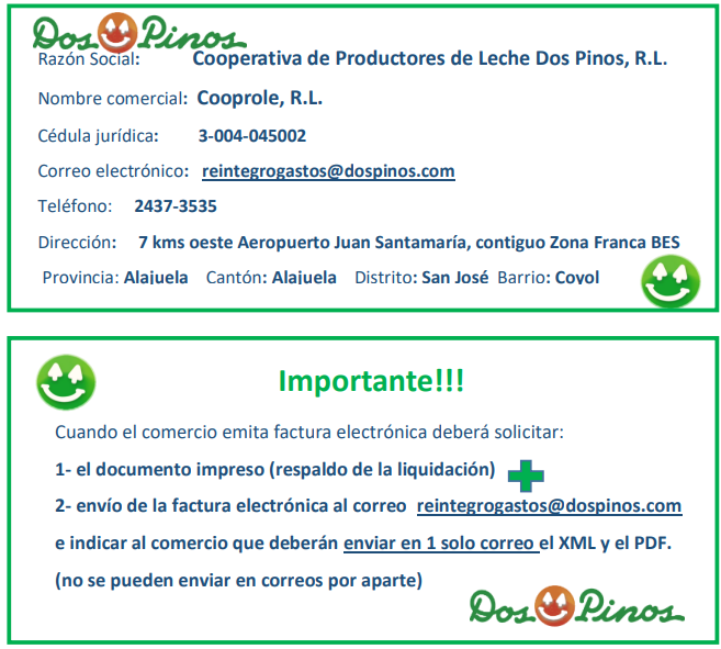 - Para solicitar en los comercios la generación de la factura electrónica, la misma debe hacerse con la siguiente información en caso de que no cuenten con la Cooperativa previamente registrada en sistema: